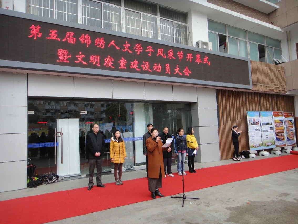 2017年3月22日下午1点15分,人文艺术学院第五届锦绣人文学子风采节开幕式暨文明寝室建设动员大会在浙商广场隆重举行。人文艺术学院院长翁惠根老师、党总支书记吴慧凤老师、副院长赵志强老师、办公室兼学工办副主任、团总支书记王春花老师、文秘教研室副主任方明星老师、张慧欣老师以及董肖曼、梁怀超、凌云志教师出席了本次活动。