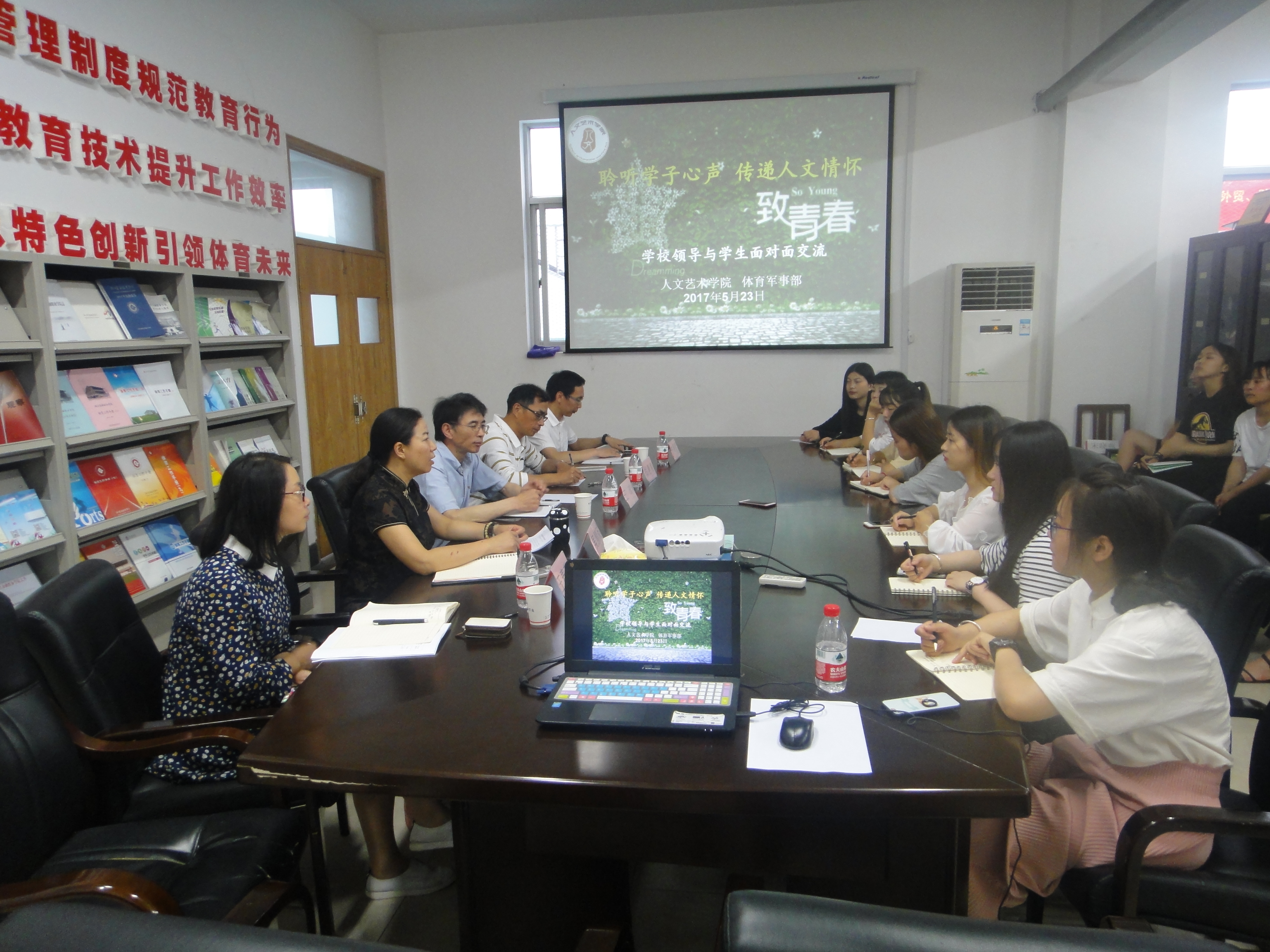 5月23日下午,在学校第十个爱生节期间,学校王琦副校长与人文艺术学院体育军事部学生代表在广发体育馆二楼会议室进行面对面座谈。人文艺术学院 体育军事部党政领导班子、文秘教研室、学工办相关老师参加了本次座谈。
