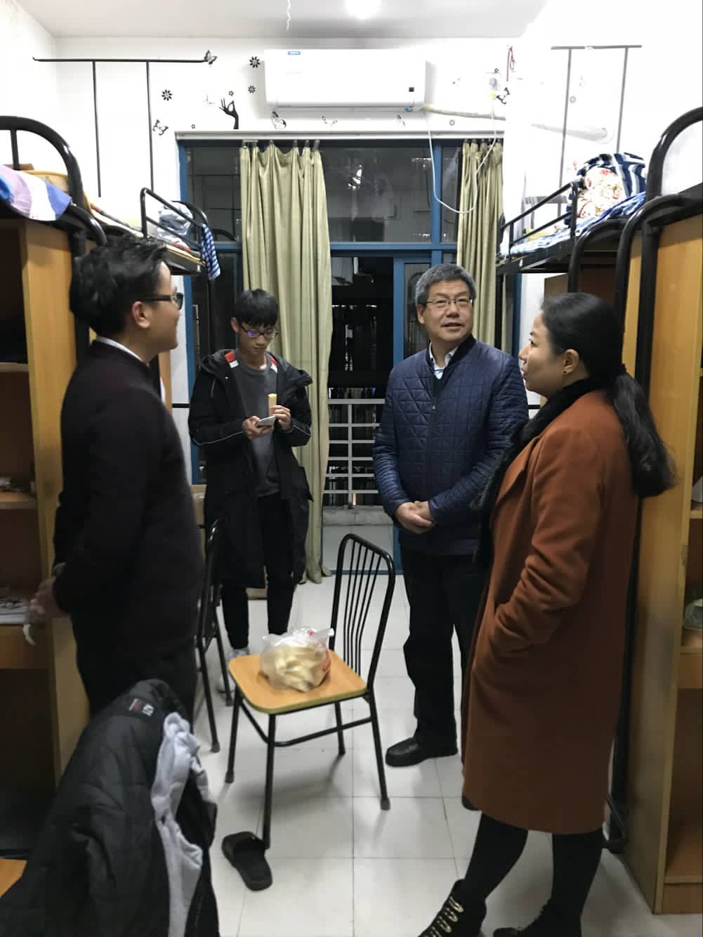在走访过程中,吴建斌还对寝室有关设施进行了检查与调试,尽可能的让同学住的舒服,让同学们感觉寝室如家一般的温暖。