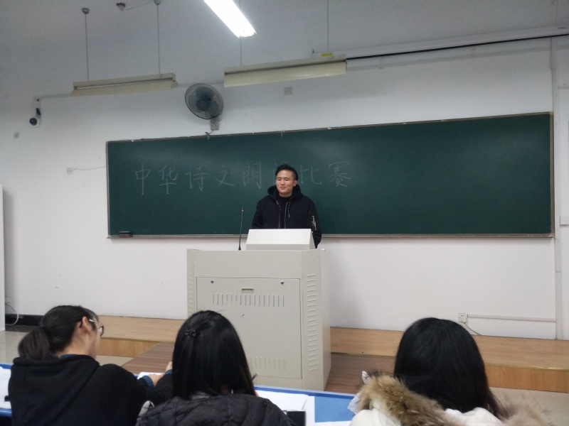 2017年12月10日晚6:30,由浙江金融职业学院学生社团联合会主办、国学诵读协会承办的”传承经典青春放歌”文秘171班古现代诗歌朗诵会8505-8507教室举办。人文艺术学院全体大一新生参加了本次诗歌朗诵会。担任本次比赛评委有人文艺术学院团总支副书记马舒兰、学生会主席江珊、副主席兼文体部部长吴虹波、秘书长严林妍、纪检部部长邵吕纳、国学诵读协会副会长胡益智。