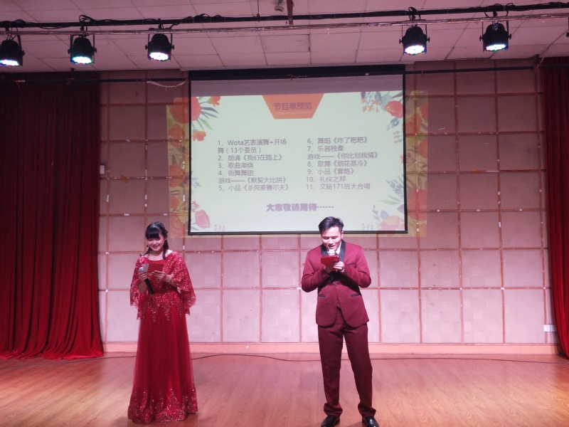 2017年12月17日周日,人文艺术学院第二届传统文化节闭幕暨2018届毕业生晚会在体育馆四楼多功能厅伴着欢声笑语拉开帷幕。人文艺术学院副院长、文秘151、152班班主任赵志强老师、文秘教研室梁怀超老师、学工办兼办公室副主任王春花老师出席本次晚会。全体2018届毕业生、部分大一大二学生参加了本次晚会。