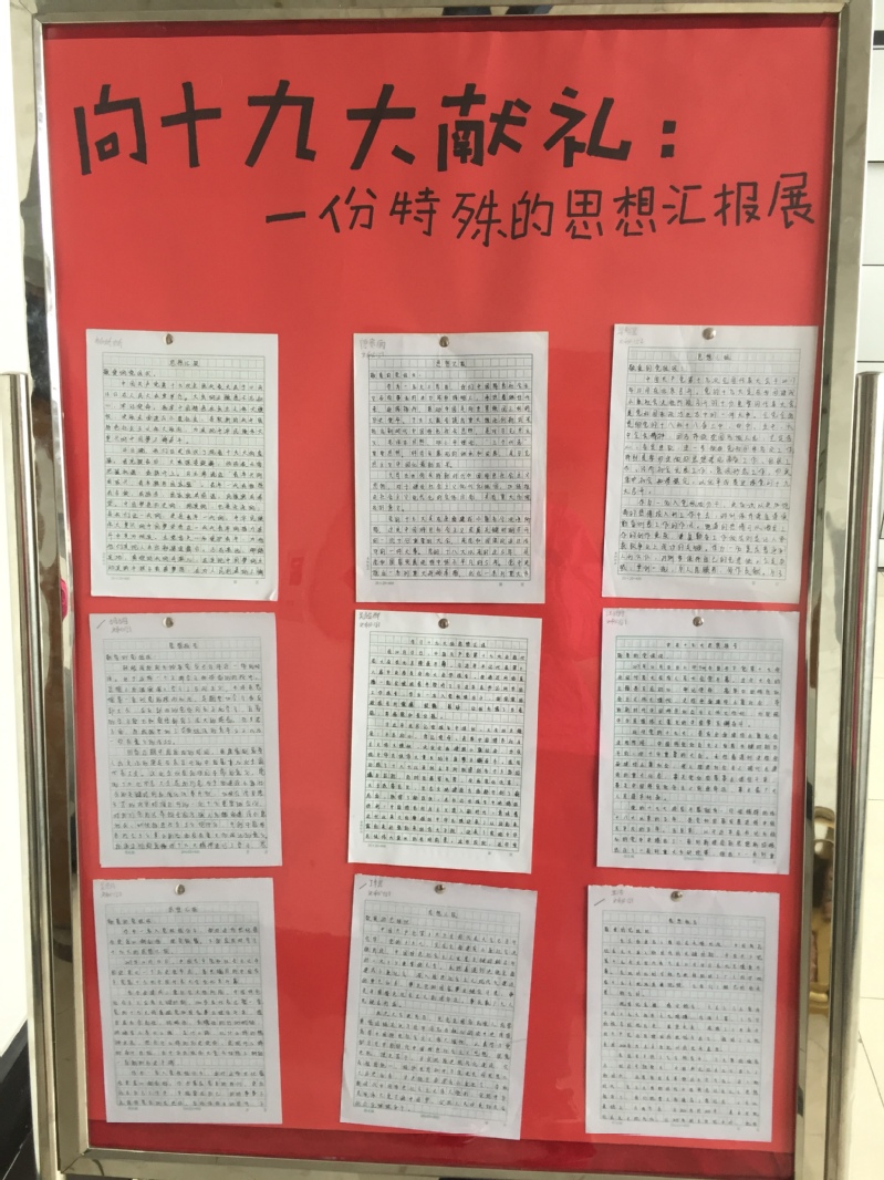 同时,党总支认真挑选出9份优秀的思想汇报进行集中展示,一方面引导广大同学积极向党组织靠拢,深入学习十九大会议精神;另一方亮出学生党员的身份,带头写好思想汇报,并积极行动起来,做好学习示范、工作示范等。