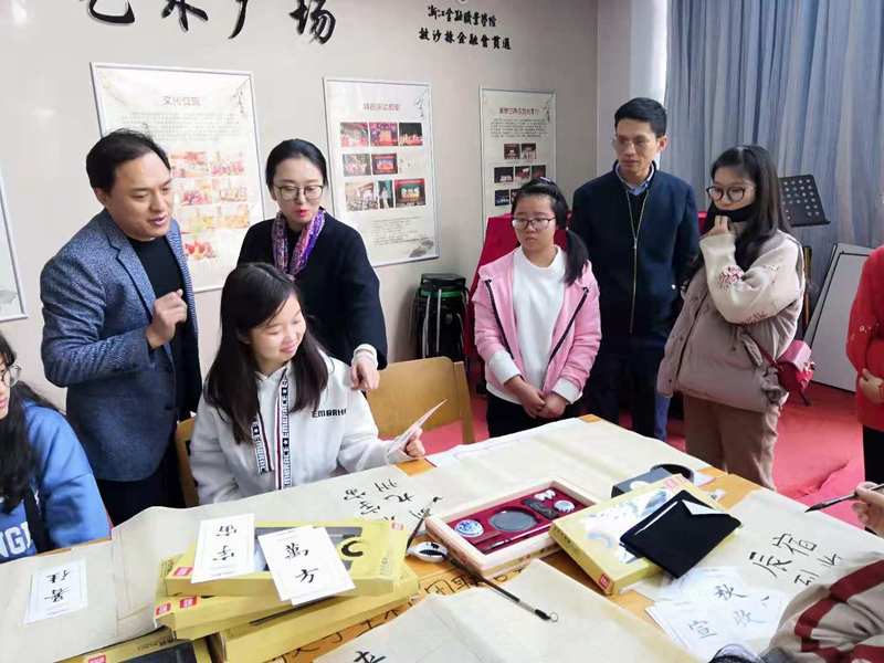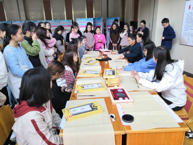 2018年11月27日中午,人文艺术学院在浙商学生发展中心一楼“艺韵鎏金”举办了第八个“深化爱生节”活动之“翰墨抒怀 走笔人生”书法培训与体验沙龙,本次活动既是人文艺术学院2018年“深化爱生节”系列活动之一,也是人文艺术学院第三届中华优秀传统文化节系列活动之一。