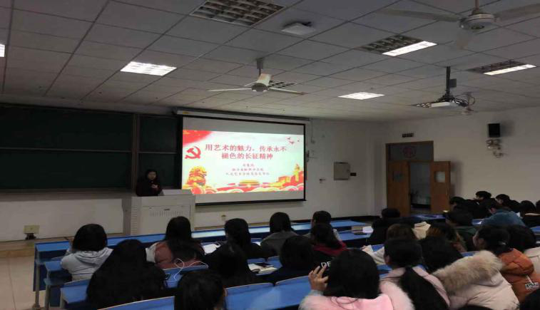 2018年12月17日下午5:30,由吴慧凤书记为主讲人的专题党课在8219教室顺利举行。本次党课以“用艺术的魅力,传承永不褪色的长征精神”为主题,人文艺术学院全体学生参加了本次党课学习。