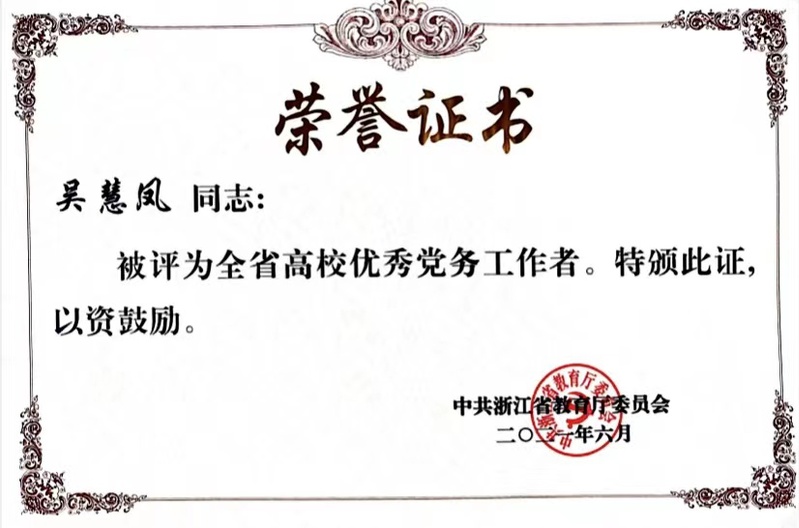 4、1名教师获浙江省高校优秀党务工作者。教师科研水平不断逐步提升。主持各级各类课题5项,发表各级各类论文17篇,出版著作3部,获实用新型外观专利9项。