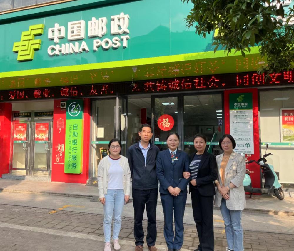 2023年5月8日下午,人文艺术学院党总支书记吴慧凤、副院长赵志强一行4人来到兰溪市马达镇走访了2011级信息传播与策划专业毕业生校友——中国邮政储蓄银行马达营业所网点负责人陈洁。分院办公室主任王春花、教学秘书邹淑荣陪同走访。