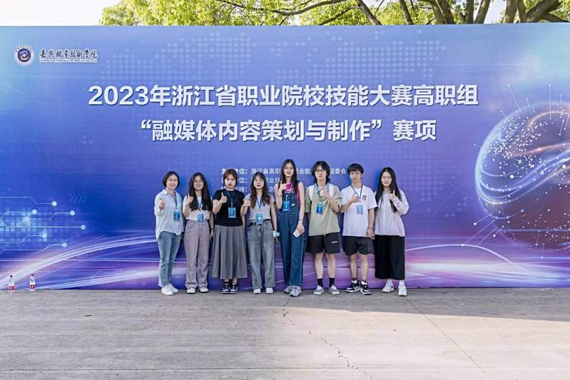2023年5月20-21日,由浙江省职业院校技能大赛组委会主办、嘉兴职业技术学院承办的2023年浙江省职业院校技能大赛高职组“融媒体内容策划与制作”赛项在嘉兴职业技术学院举行。我校人文艺术学院王春花、徐卉、刘祖昊老师指导的学生团队分获一等奖和三等奖。其中来自文秘221班胡滢、叶展宏、博采211班余芳婷三位学生团队获一等奖;文秘221班潘芳婷、博采211班张鑫俣、崔强三位学生团队获三等奖。