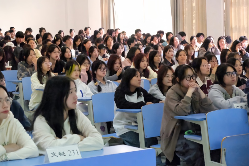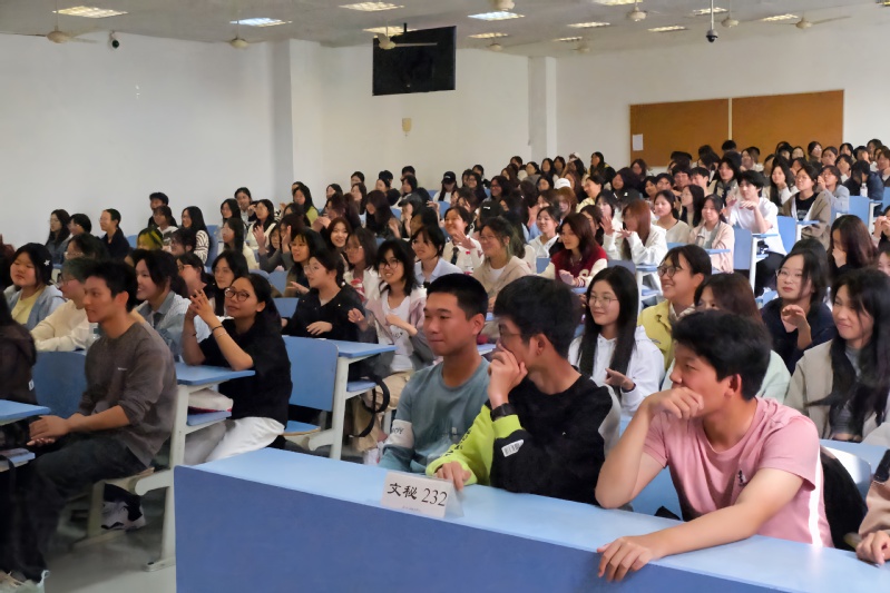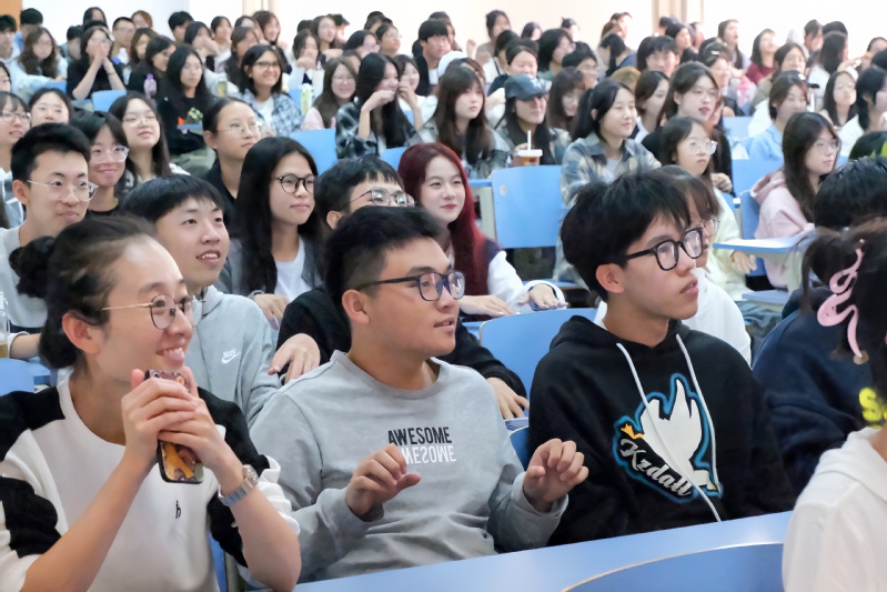 最后何教授用“成己、成人、成物”三个词作结束语。通过本次演讲他希望同学们在大学生活中了解成就属于自己的生命成长,祝福各位同学生命美好,在大学里发光发热,留下属于自己色彩。同学们认真聆听何仁富教授的讲话,不时报以热烈掌声。