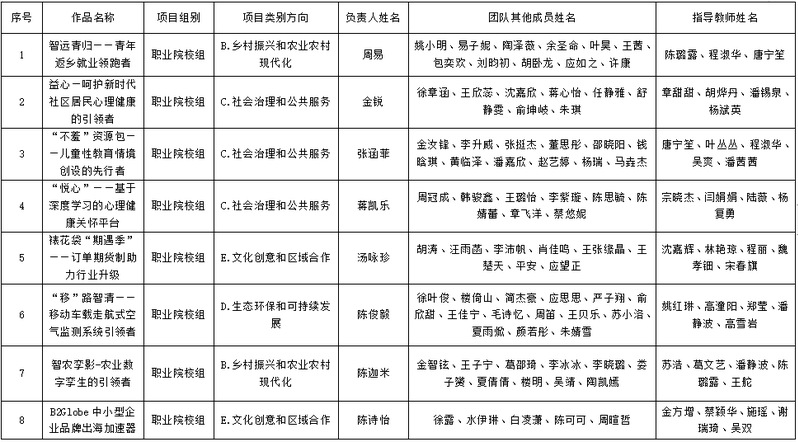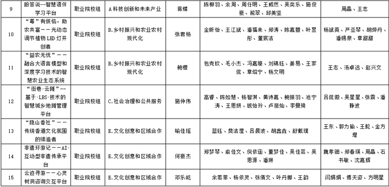 根据《关于举办浙江省第十四届“挑战杯”大学生创业计划竞赛的通知》文件要求,浙江省第十四届“挑战杯”大学生创业计划竞赛校赛选拔自3月份启动,经各二级学院自主申报、校团委汇总,经校外专家初评,拟推荐《智远青归——青年返乡就业领跑者》等15个项目参加省级竞赛,现予以公示。