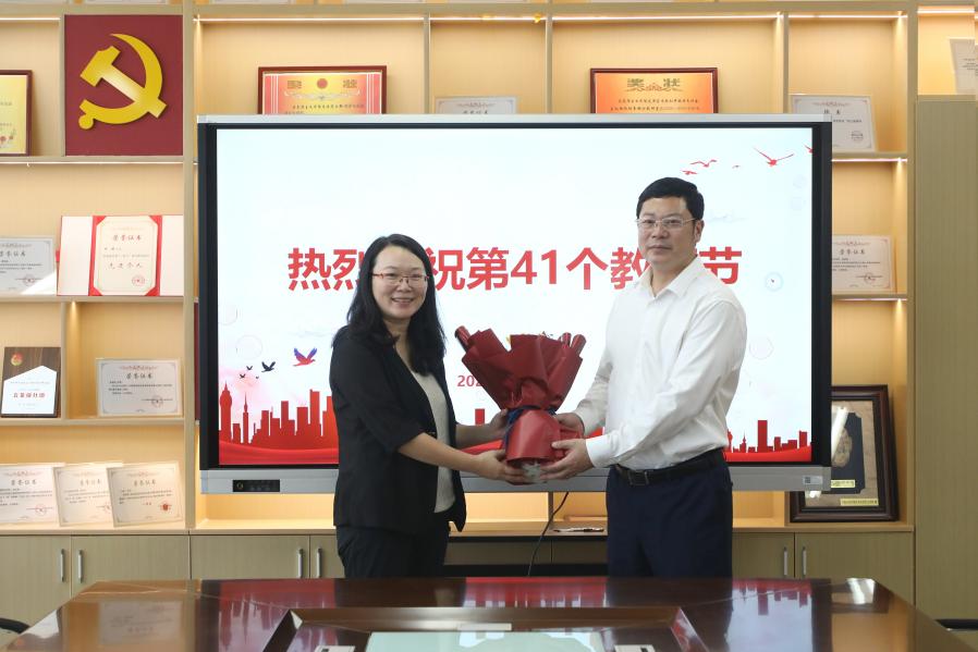 教育大计,教师为本。9 月 10 日,在第 41 个教师节来临之际,为大力弘扬教育家精神,切实加强教师队伍建设,为学校“双高”建设注入强劲动力,进而助力教育强国建设,党委书记金杨华、校长陈荣达及校领导班子成员分别率队深入各二级学院、部门,开展教师节走访慰问活动,向辛勤耕耘在教育教学、科研、管理一线的全体教育工作者致以节日的祝福和崇高的敬意。